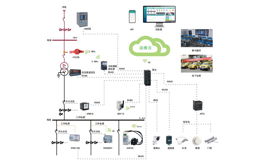 實(shí)時(shí)監(jiān)測(cè)變電所的運(yùn)行環(huán)境,包括環(huán)境溫濕度、水浸、門(mén)磁、煙感、線(xiàn)纜溫度等,并可實(shí)現(xiàn)視頻監(jiān)視和錄像回放;