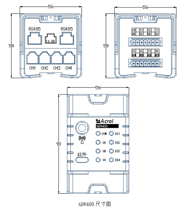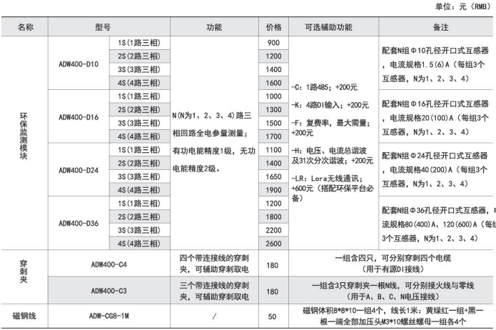 環保分表計電設備ADW400:三相電流,電壓,電能測量,配套3只開口式互感器,電流規格100A;400A;600A